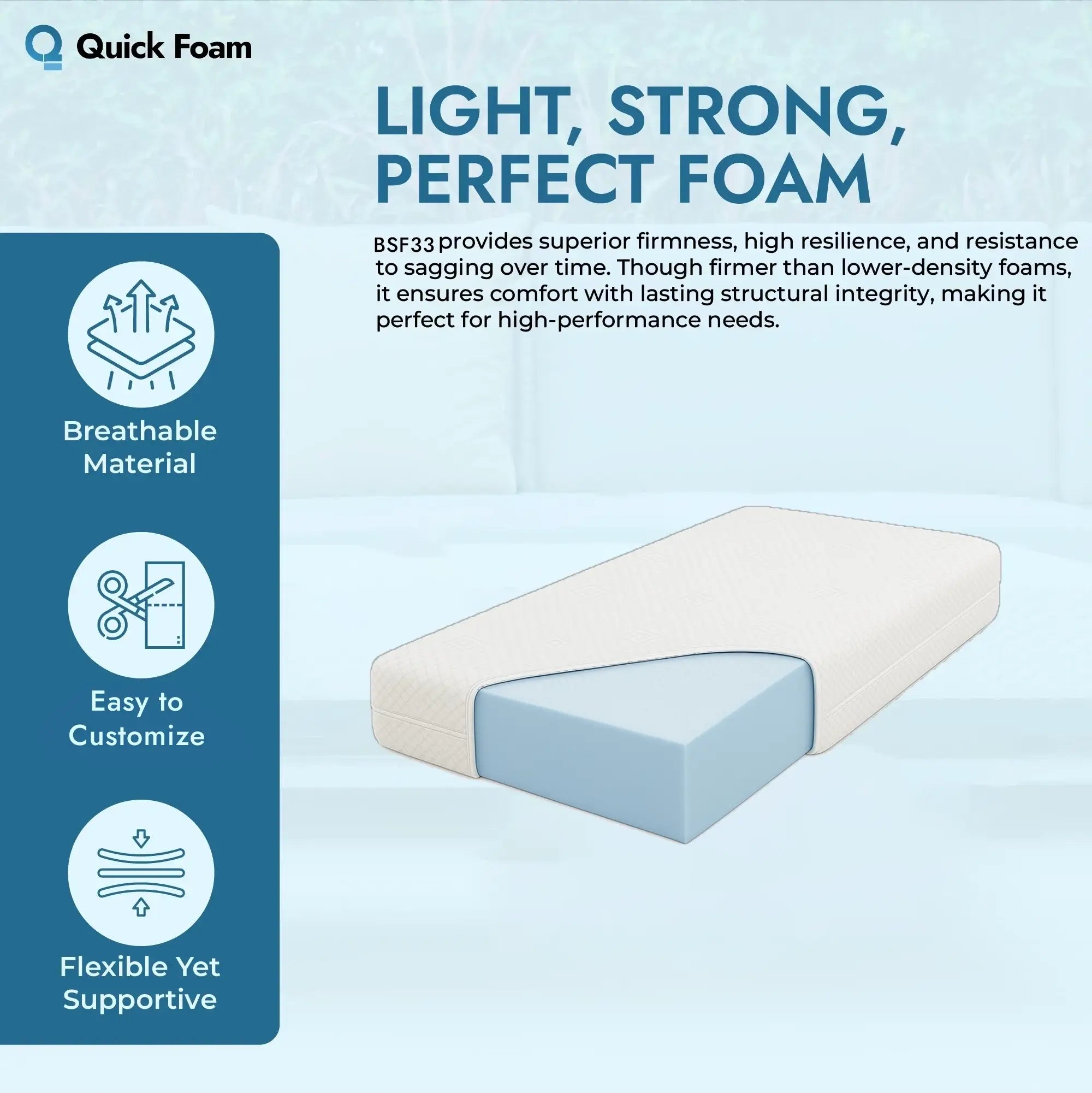 At Quick Foam, we combine local expertise with high-quality materials to provide custom foam solutions that last. Choosing the BFS33/190 mattress ensures: