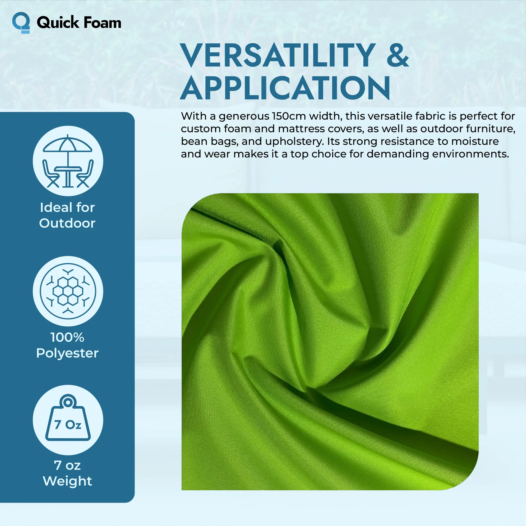 This fabric is widely used across various industries and personal projects. At Quick Foam, it is especially popular for customers needing dependable protective covers for foam-based products.